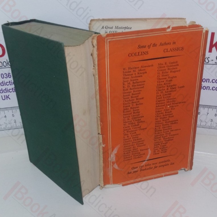 xviii, 1,100pp. Green cloth-covered boards, gilt titles on spine. Top text block edge sprayed green illustrated endpapers. 12mo. Spine sun-faded where there is dust jacket loss, rubbed spine ends. Text block edges tanning. Gutter stretched at title page. Bookseller’s label on front pastedown. Internally neat, clean, bright and tight. Dust jacket spine sun-faded, has loss at spine ends, closed tears, shelf wear, chipping to edges, mirrors book damage.