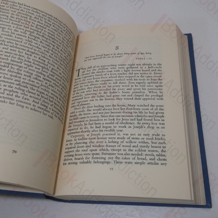 First edition, first printing. 394pp. In blue cloth-covered boards with silver and gilt lettering on spine. 8vo. Cloth slightly rolled at spine ends. Internally neat, clean, bright and tight. In its original dust jacket, rubbed, creased and chipped at edges with minor loss at spine tips. A recounting of the human drama of the life of Christ, based on research and scholarship.