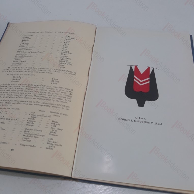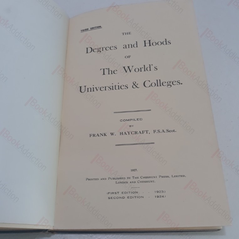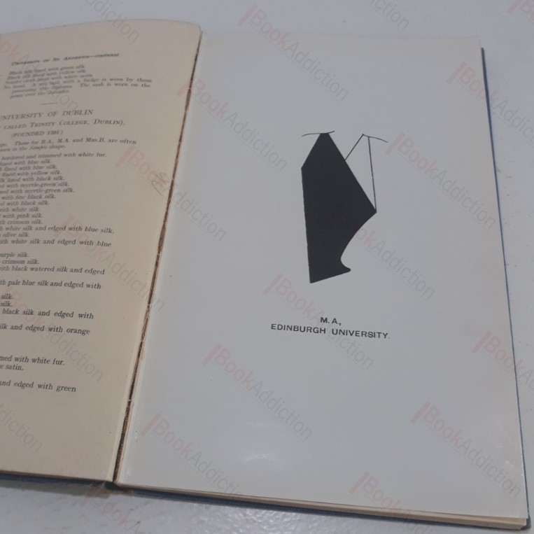 104pp, 2 illustrative plates. Blue cloth-covered boards with black titles on spine and front. Spine cover almost detached from back board, sun faded. General wear to boards with a few pen marks. Corners well worn. At least one instance of notes in margin, otherwise internally neat, clean, bright and tight. Contemporary advertisements for robe makers etc, some in colour. 8vo Sections on Lambeth Degrees, Literates’ Hoods, Musical and Other Diplomas, Colonial Universities, Universities in the United States, Gottingen Degrees, French Degrees, etc.