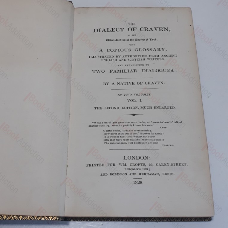 The Dialect of Craven, in the West-Riding of the County of York with A Copious Glossary (2 volumes)