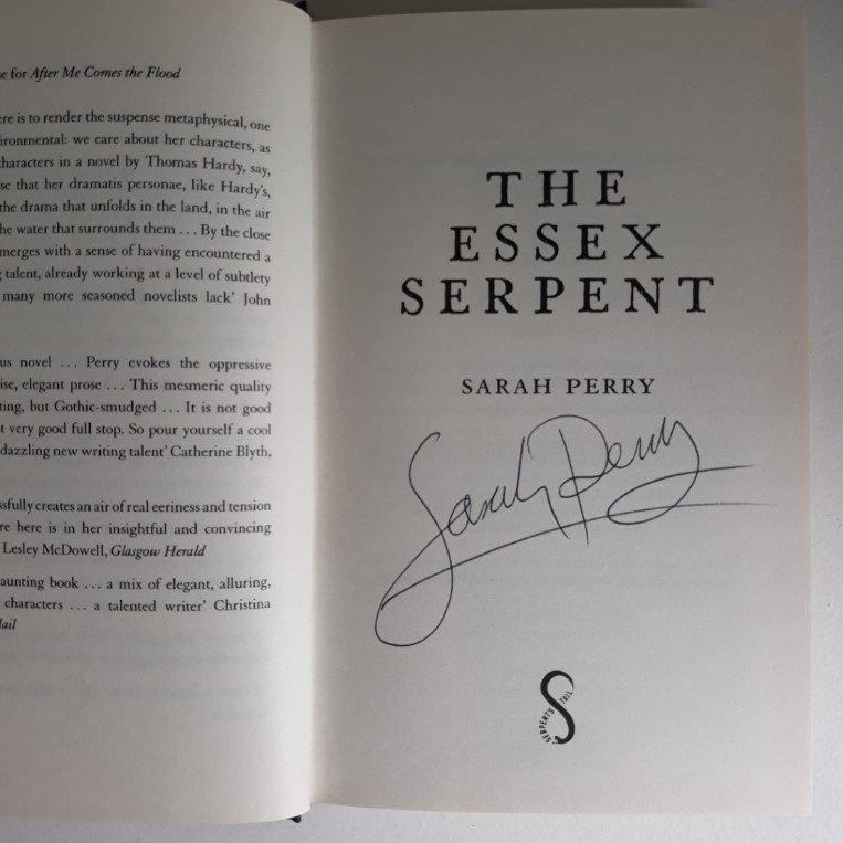 1st edition, 1st printing (true first). 424pp. Black cloth boards with silver gilt titles to spine. Yellow floral endpapers. Signed by Sarah Perry on the title page. Hint of creaminess. In its original, not price clipped, dust jacket (very slight scuff on one corner), now fitted with an archival quality mylar wrapper which is not adhered to the book or the jacket. Jacket bears sticker from Foyles stating its a signed, first edition. Signed, true firsts are hard to find as most of the copies Perry signed appear to be later printings. Gift and collector’s quality item.