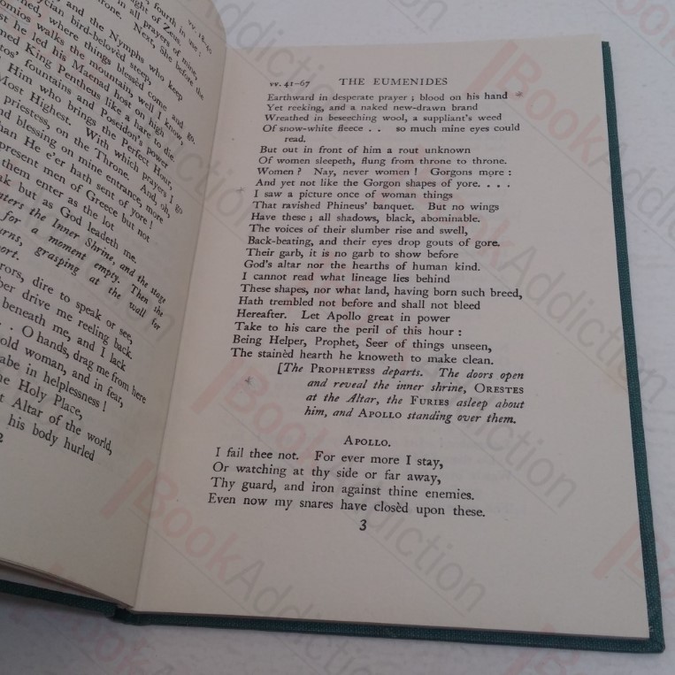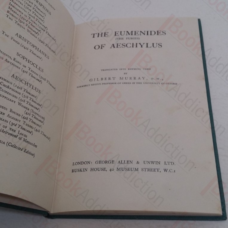 Translated into rhyming verse by Gilbert Murray, The Eumenides is the final play in Aeschylus’s Oresteia trilogy in which Orestes is pursued by the furious Furies for the murder of his mother, Clytemnestra, avenging the death of his father, Agamemnon