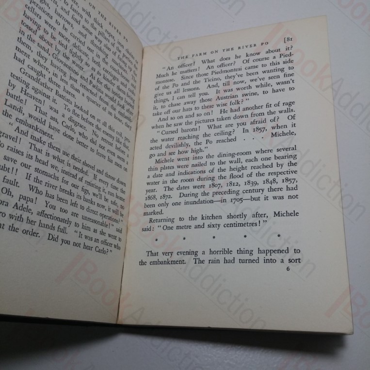 252pp. Black cloth-covered boards with gilt titles to spine. 12mo. Spine moderately sun-faded, ends rounded. Corners lightly rubbed and rounded, boards have light fading to top and edges with general wear all over. Text block lightly tanned and foxing. Free endpapers starting to fox, light pencil markings to front free endpaper. Rear hinge cracked and straining. Internally pages are age toned with occasional spotting and gutter strained mid-way through otherwise, neat, clean and bright. A picture of family life on the farm on the banks of the River Po, Italy. Then through time along comes the dreamer and the great dream: the boy who has absorbed the spirit of his beloved farm, but who has a later vision of the universal brotherhood of man.