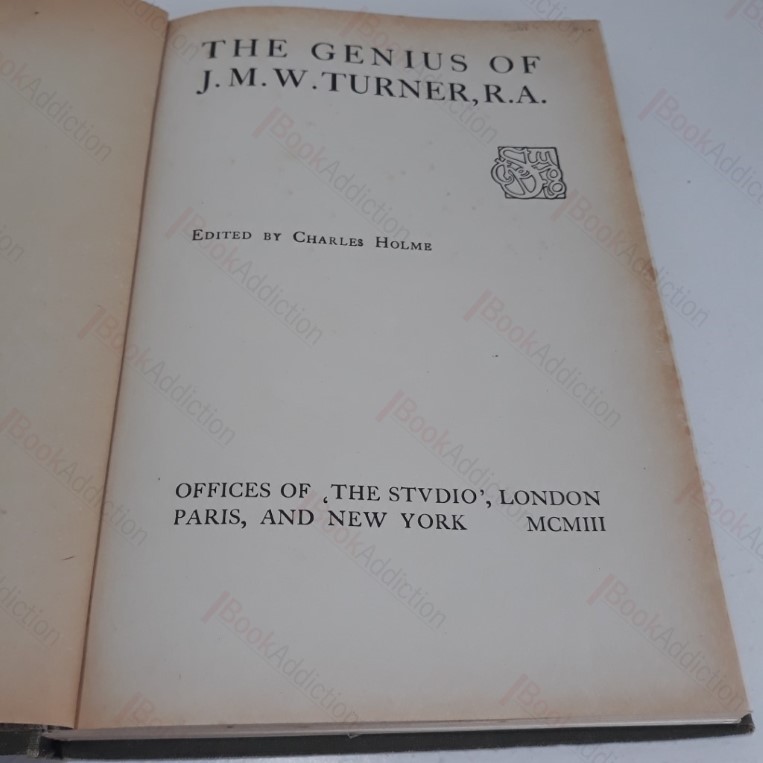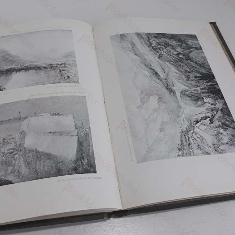 Divided into 4 essays, each numbered separately; xvi, viii, viii, xxiv then followed by a section of black and white and colour plates. 16 coloured plates, 140 others. Green cloth-covered boards with gilt tittles and design on front and spine, bevelled edges. Spine ends rubbed, general shelf wear on covers. Slight foxing to text block edges. Decorated endpapers with small label on front paste down. Toned verso of free endpapers and title page. Slight foxing on prelim pages. 4to. A representative selection of J M W Turner’s works – paintings, drawings and etchings – from a range of points in his career, with extensive commentary and analysis.