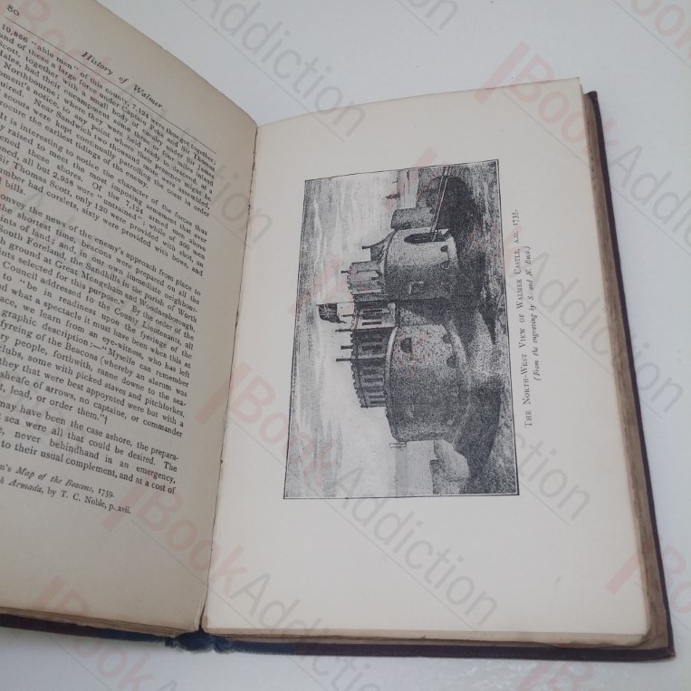 First edition, first impression. xviii, 248pp, with plate frontispiece and six further plate illustrations in text; headpieces, tail pieces, and other occasional page decorations. Quarter bound in blue cloth over deep red cloth, gilt titles on spine. Deckled edges and printed on wove paper (except plates). 8vo. Boards are worn, a little rubbed at edges and rounded on corners and spine ends. Armorial bookplate of Sidney A Beveridge on front paste down, previous owners inscription on front free endpaper and further previous owner’s name, Admiral Henry Boys, dated 1894. (Admiral Boys was superintendent of the Royal Navy College at Portsmouth, Director of Naval Ordnance and Second in Command of the Channel Fleet, 1878-79). Faint and occasional spotting on endpapers. Else internally neat and clean, if just a tad loose. A lovely vintage copy of this hard to find history of Walmer and its castle.