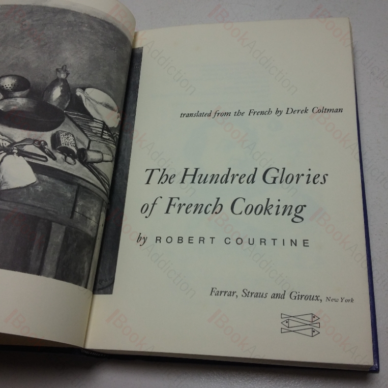 First American edition, first printing (previous published in France in the original French under the title Cent Marveilles de al Cuisine Francaise). 506, [6]pp, profusely illustrated. Blue cloth-covered boards, silver-stamped lettering on the spine. Cloth has a little scattered, mild mottling along upper edge, gently pushed at spine tips. Gift inscription inked on front free endpaper, dated 1979, else internally neat, clean, bright and tight. In its original, illustrated dust wrapper., a little bumped along extreme upper edge, tiny nick on upper leading corner. Dust jacket now protected in an archival quality Mylar wrapper fitted without the use of tape or adhesives. The Mylar wrapper itself is a little shelf worn.
