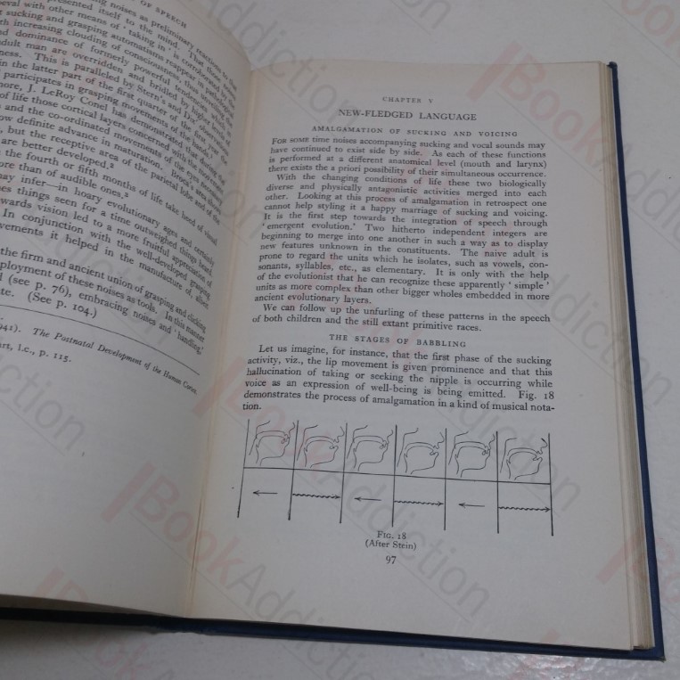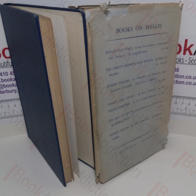 210pp, eight black and white plates. Blue cloth-covered boards, gilt titles on spine. Bumped spine ends. Text block edges starting to tan. Previous owner’s name on front free endpaper. Internally neat, clean, bright and tight. Dust jacket has loss at spine heel several closed tears, sunning and wear, price u clipped. Sets out to prove that the speech of primitive communities throws light on modern speech disorders and that modern speech disorders suggest how primitive man spoke. 8vo.