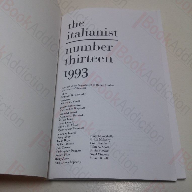286pp. Pictorial light card covers. Sun faded covers. Chipping to rear cover. Internally, neat, clean, bright and tight. 8vo. Journal of the Department of Italian Studies at the University of Reading.