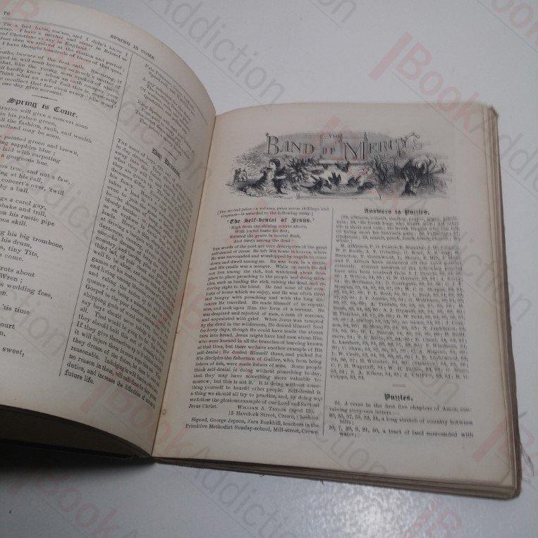 188pp, engravings throughout. Black covered cloth boards. 8vo. Very heavy wear and fading to this book, bottom half of the backstrip missing, the top portion is considerably faded with loss at top end. Boards are considerably faded and worn with all edges and corners rubbed and rounded. Text block edges tanned and dusty. Internally the front and back hinges are stretched, some gutters are strained throughout; very loose. Pages age toned with varying degrees of foxing throughout. However it contains many beautiful black and white engraved plates and illustrations, lots of articles, poetry, puzzles, letters and more.