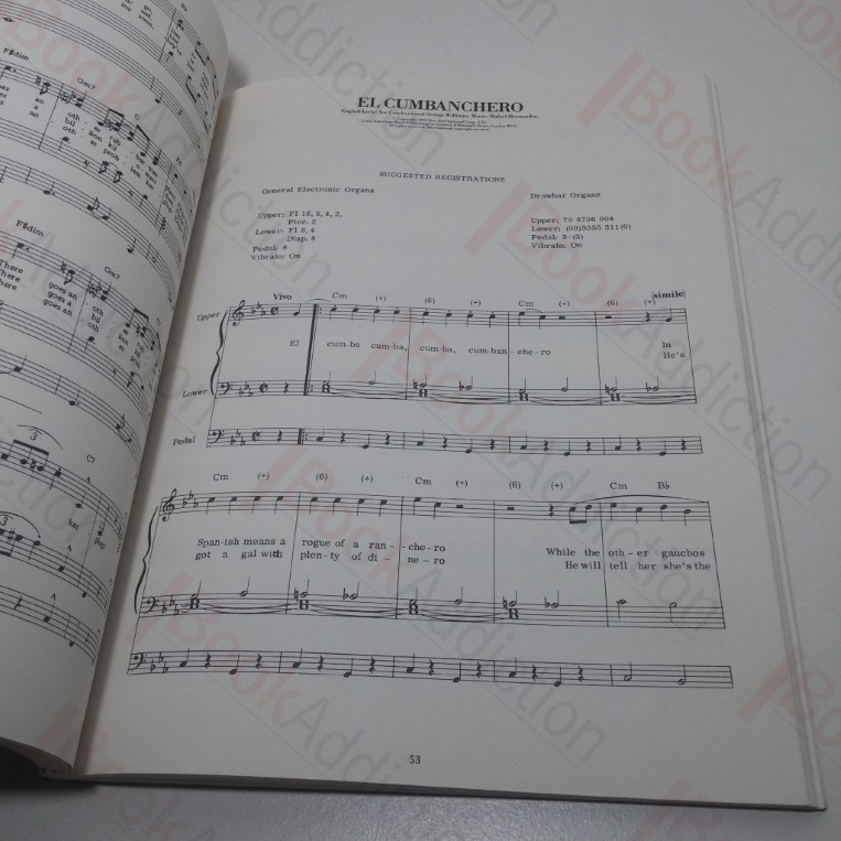 A collection of fifty songs with lyrics and music arranged for the organ. Songs include Crusing Down the River; If My Friends Could See Me Now; Pigalle; Take Me Home Country Roads; We’ll Be Together Again; When You Wish Upon a Star; Edelweiss and many more.