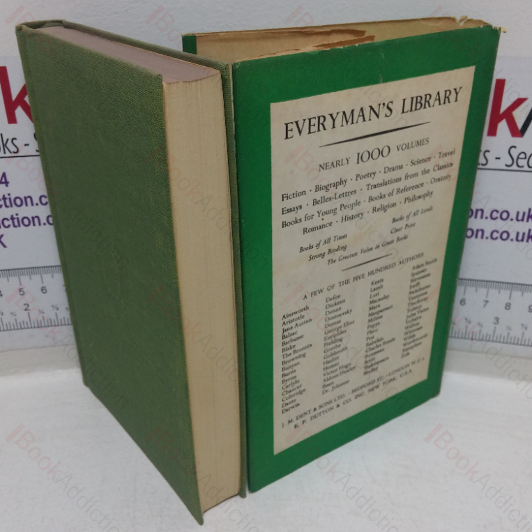 Reprint.  xlii, 468pp.  Green cloth boards, gilt lettering to spine.  Everyman Library patterned endpapers.  12mo.  Cloth a little faded in margins, gently pushed in at the head of the spine.  Upper text block edge dust dulled.  Internally neat. clean, bright and tight,  Original dust wrapper, worn and rubbed, a little sunned over the spine, rubbed and bumped at edges.
