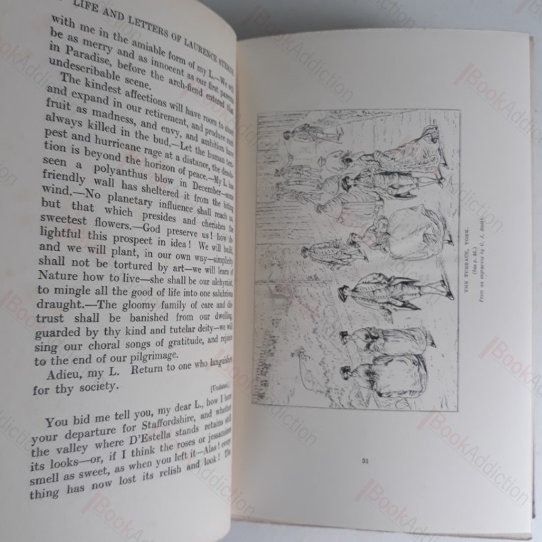 [1910]. Complete in two matching volumes. 326pp; 348 & 32pp (ads). Buckram covered boards with gilt lettering, colour plate frontispieces, tissue guarded, and 24 further illustrations. Top edge gilded, else rough cut edges (boards on both volumes lightly rubbed at edges, a little rounded on corners and spine ends, volume two has a couple of mild marks on front board). Text block edges a little dust marked. Internally neat, clean, bright and tight barring the mildest hint of toning on prelims. The leading, most authoritative literary biography of Laurence Sterne, author of Tristram Shandy and A Sentimental Journey Through France and Italy