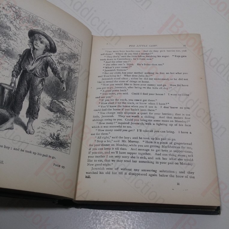 Undated. 156pp, ten black and white plates (inc. two frontispieces). Dark green boards with decorative illustrations and reverse gilt titles on the front and spine, illustrated chapter headers and footers, initial letters and some black and white in-text illustrations. 12mo. Corners rubbed and rounded, cloth rubbed through; spine ends rubbed; cloth wearing. Some soiling to boards and a very small dent on the edge of the spine on the board. Hinges cracked and volume very loose. Yellow endpapers soiled, minor loss to fore edge of front pastedown; previous owner’s address in rear pastedown. Gift inscription in pen on a verso of front free endpaper (dated 1890). Prelims foxing, small ink smudge on title page.