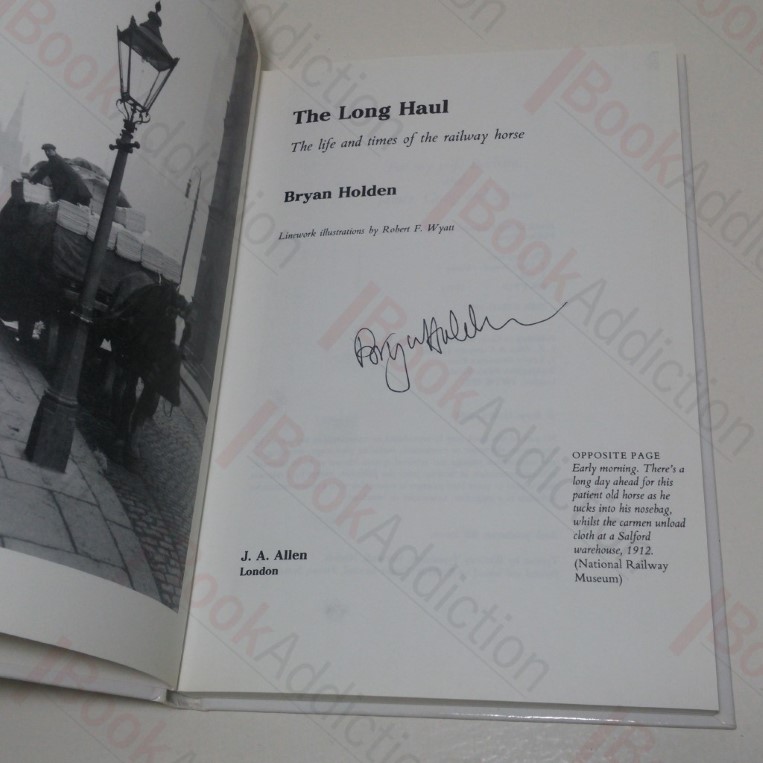 196pp, copiously illustrated in black and white. Signed by Bryan Holden on the title pate. Bound in illustrated, laminated card covers. 8vo. Very slightly bruised at spine ends, else neat, clean, bright and tight throughout. The story of the railway workhorse, without which Britain’s steam locomotives could not have functioned. A record and a tribute to the horses who from the early 1830s until 1950s.