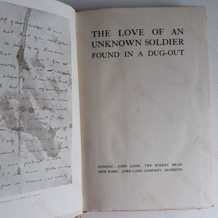 196pp. Green cloth boards (lightly worn, a few marks, rounded at corners and spine ends). Rough cut edges on fine quality paper. Ffep absent else internally neat and clean with fresh pages, barring a little light spotting on endpapers. The poignant letters of unknown soldier, likely then dead, in First World War to an unknown women, found in a dug-out in France by a fellow officer in the first world war. Edited by John Lane.