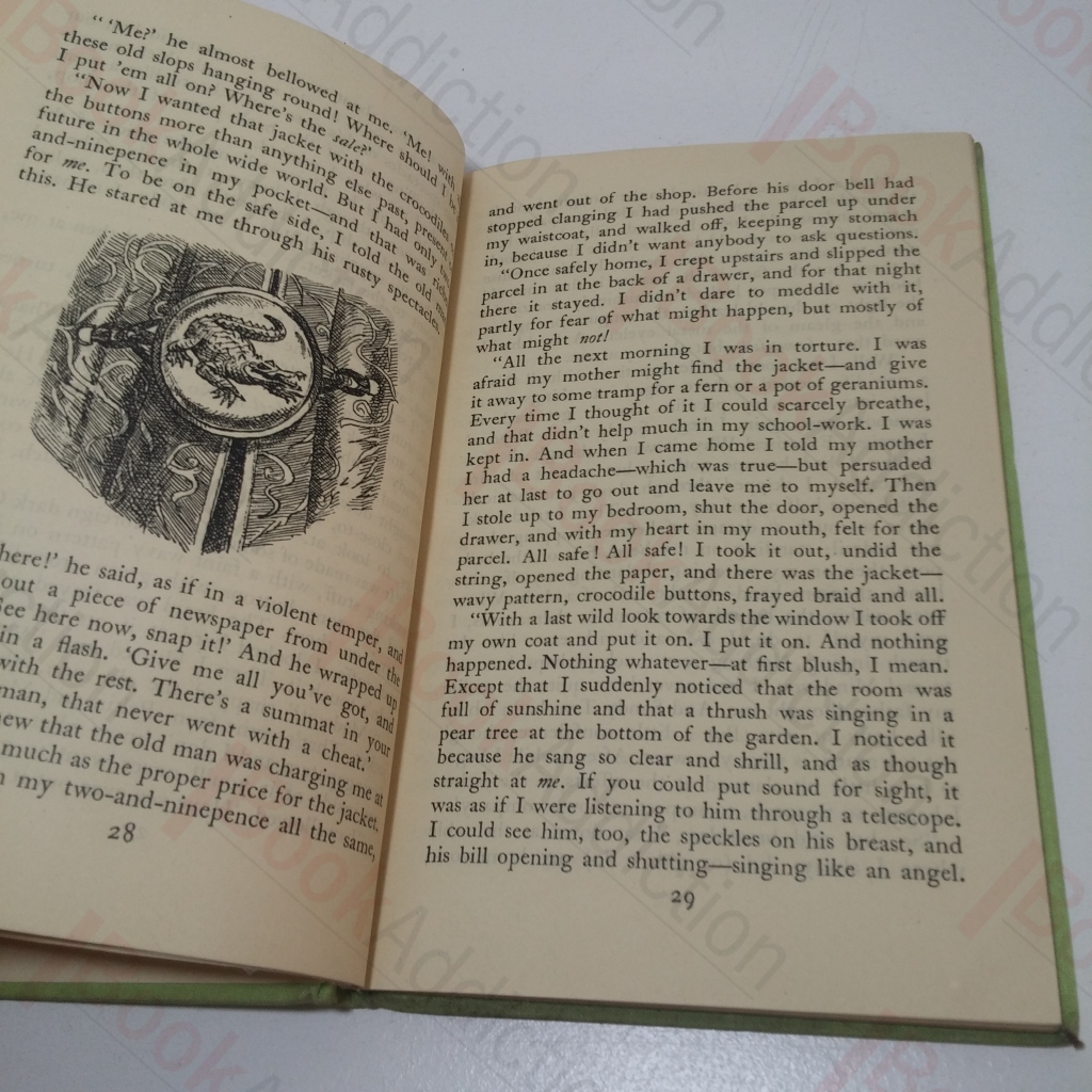 First edition. 148pp. Green cloth-covered boards, blue illustration on front, blue titles on spine. 8vo. Sun-faded board edges, rubbed bottom edges and spine ends, quite cocked. Text block edges tanning. Gift inscription on front pastedown; volume quite loose. Otherwise internally neat, clean and bright. Dust jacket tanning, protected with Brodart-style sleeve, loss to spine ends, 1cm closed tear to top rear, shelf wear, price clipped.