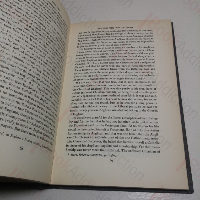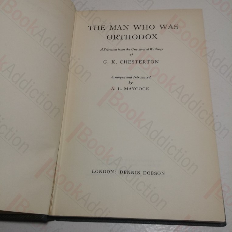 192pp. Black cloth-covered boards, silver titles on spine. Bumped spine ends. Top text block edge dusty; all edges tanning. Internally neat, clean, bright and tight. Paper dust jacket sun faded, has closed tears at spine ends, shelf wear, chipping to edges, mirrors book damage, price unclipped. 8vo. Contains many jewels of Chesterton’s characteristic wit and wisdom as Maycock reviews two of his particular aspects, as a journalist and as a Christian apologist.