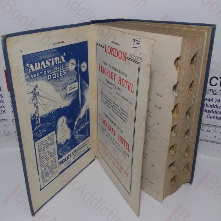 lx, 1475pp, with several contemporary adverts throughout volume, some printed in two colours.  Quarter bound in blue leatherette over blue cloth-covered boards with gilt lettering and titles on both panels and spine.  8vo.  Cloth is a little worn, with some indentations, rubbed and rounded at corners, more so at spine ends.   Suggestion of toning and some faint spotting on endpapers, small number neatly inked on front free endpaper, base of gutter ahead of title page cracked else internally neat, clean, bright and tight.