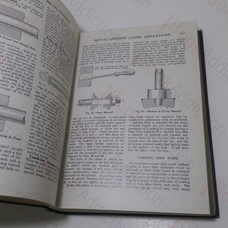Vol II (of II) only. Undated. 397-776pp. Navy cloth-covered boards, blind embossed motif and border on front, gilt titles on spine. Top text block edge sprayed blue, illustrated with black and white photographs and diagrams. 8vo. . Lightly rubbed spine ends and corners. Endpapers slightly tanned. Front hinge cracking; volume quite loose, else internally a neat, clean and bright. Subjects include Metalworking Tools and Equipment; Casting and Forging; Fitting and Erecting; Lathe and Lathe Work.