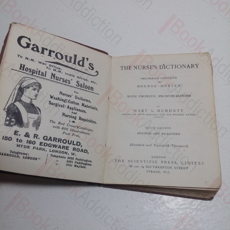 Undated but circa 1910. 170pp, including contemporary advertisements, mostly for health and medical related products. In brown cloth boards with gilt titles (worn, heavily rubbed at edges, rounded at corners, cracked and fraying at spine ends, faded). The binding has weakened, with the text block now fragile in casing. Some minor spotting and toning on pages, occasional corner creases, previous owner’s name on first page. A useful and readable copy of this now hard to find phonetic dictionary of medical terms. Small, pocket-sized volume. 32mo.