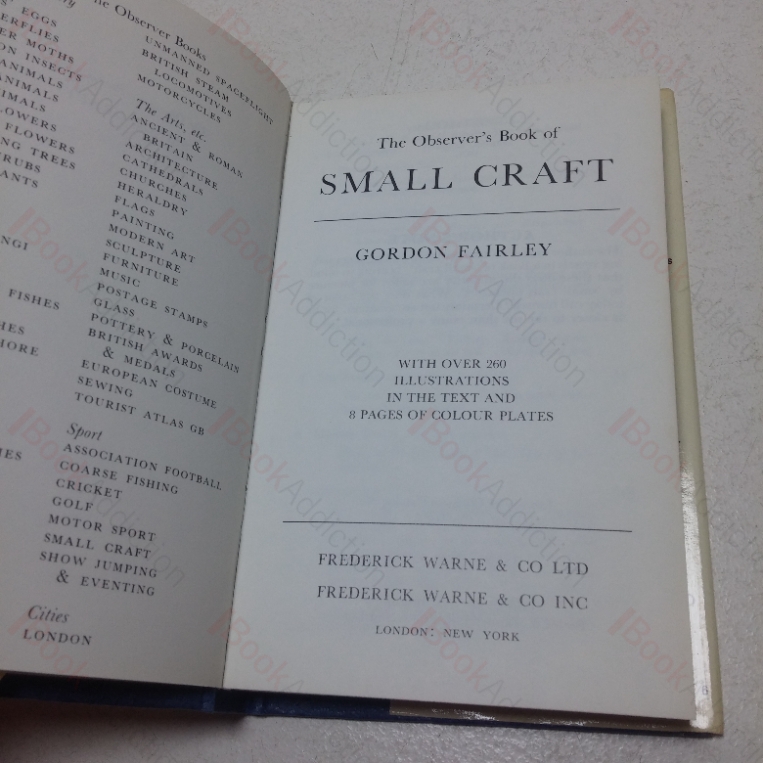 Two volumes, both first editions, first printings, in 1975 and 1976 respectively.   Cloth-covered boards with white lettering front and spine.    Illustrated endpapers.  24mo.  Cloth on both volumes very slightly pushed in at spine ends, a little rubbed along upper edge, with some mild discolouration to text block edges, else neat, clean, bright and tight throughout.  Motor Sport has a previous owner’s stamp on the front free endpaper. In their original glossy, illustrated dust wrappers, both very slightly rubbed and bumped at extreme edges with some yellowing to Motorsport. The dust jacket on Small Craft is price clipped.