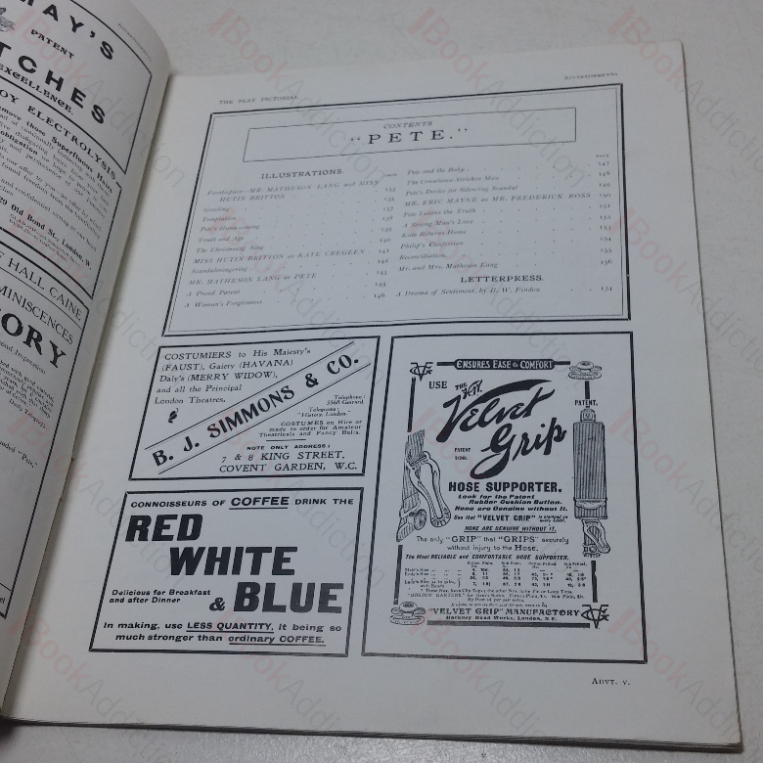 The Play Pictorial was a monthly London theatrical magazine. There were 446 issues in total, with the first published in April 1902 and the last in September 1939. It was first edited by Rudolph Birnbaum (from April 1902 to April 1904), then by Frank M Boyd. then Fred Dangerfield. In 1906, after Benjamin Findon became editor, a position he retained until the journal folded on the outbreak of the second world war. The Play Pictorial showcased, with largely pictorial features, contemporary West End theatre productions, with each issue providing a detailed record of a single show. It described plot, costumes and sets, and had numerous photographs of the cast and scenes from the production. For musicals, some of the lyrics and short extracts from the scores were included. This issue features a 1908 production of Pete, with Matheson Lang starring as Peter Quilliam.