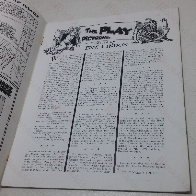 The Play Pictorial was a monthly London theatrical magazine.  There were 446 issues in total, with the first published in April 1902 and the last in September 1939. It was first edited by Rudolph Birnbaum (from April 1902 to April 1904), then by Frank M Boyd. then Fred Dangerfield.  In 1906, after Benjamin Findon became editor, a position he retained until the journal folded on the outbreak of the second world war.  The Play Pictorial showcased, with largely pictorial features,  contemporary West End theatre productions, with each issue providing a detailed record of a single show.  It described plot, costumes and sets, and had numerous photographs of the cast and scenes from the production. For musicals, some of the lyrics and short extracts from the scores were included.  This issue features a production of  the musical The Balkan Princess starring Isabel Jay.