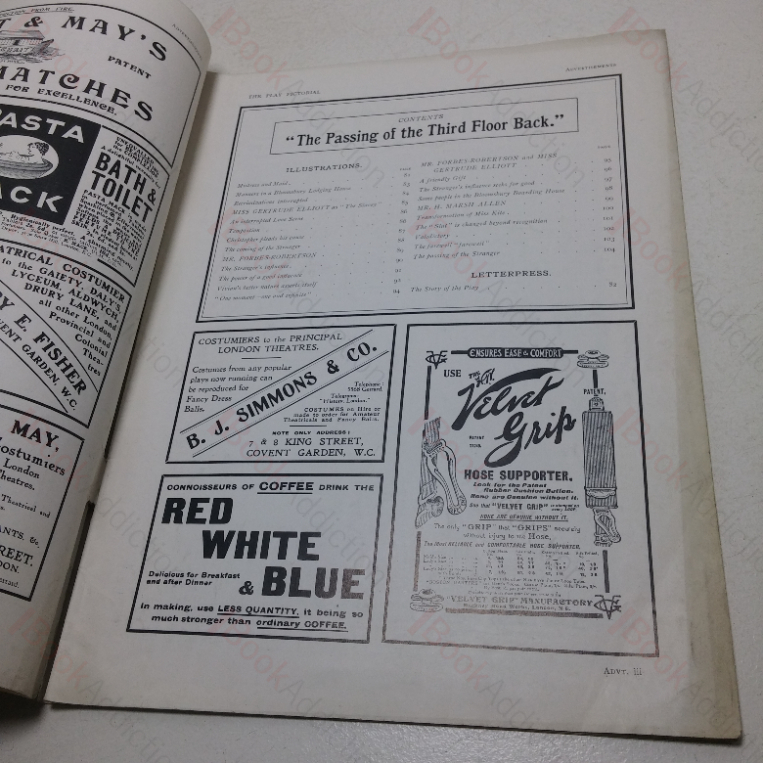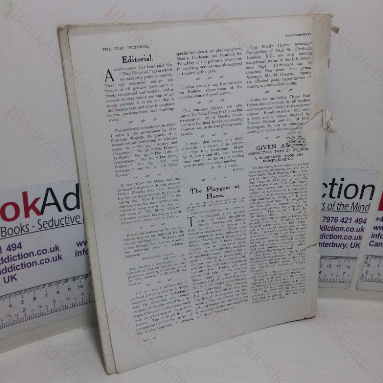 The Play Pictorial was a monthly London theatrical magazine.  There were 446 issues in total, with the first published in April 1902 and the last in September 1939. It was first edited by Rudolph Birnbaum (from April 1902 to April 1904), then by Frank M Boyd. then Fred Dangerfield.  In 1906, after Benjamin Findon became editor, a position he retained until the journal folded on the outbreak of the second world war.  The Play Pictorial showcased, with largely pictorial features,  contemporary West End theatre productions, with each issue providing a detailed record of a single show.  It described plot, costumes and sets, and had numerous photographs of the cast and scenes from the production. For musicals, some of the lyrics and short extracts from the scores were included.  This issue features a 1908 production of The Passing of the Third Floor Back.