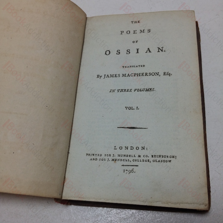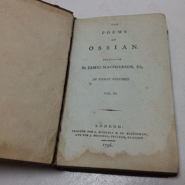 This early, complete set of the Poems of Ossian is suitable for restoration and/or rebinding.