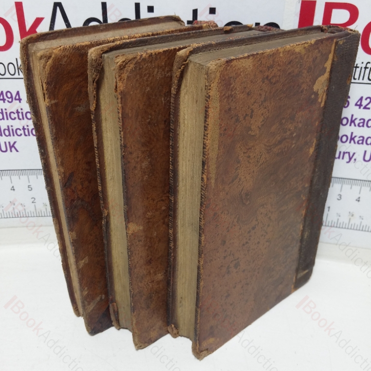Complete in three volumes. xii, 236pp; [2], 254pp; [2], 270pp. All three volumes uniformly bound in full brown calf’s leather. 24mo. Boards are very heavily worn, chipped and marked, heavily rubbed – right through in places – on all edges. Upper panel on volume one detached. Volumes two and three have been previously, clumsily, repairs with brown canvas over spines and now lack their lower red leather spine labels (all upper spine labels present). Text block edges dark. Endpapers show a little damp damage; the rear free endpaper in volume two is creased and partially detached. Volume one has a previous owner’s name inked on the front free endpaper.. Some mild and occasional spotting to first and last few leaves in each volume else internally neat, clean and tight.