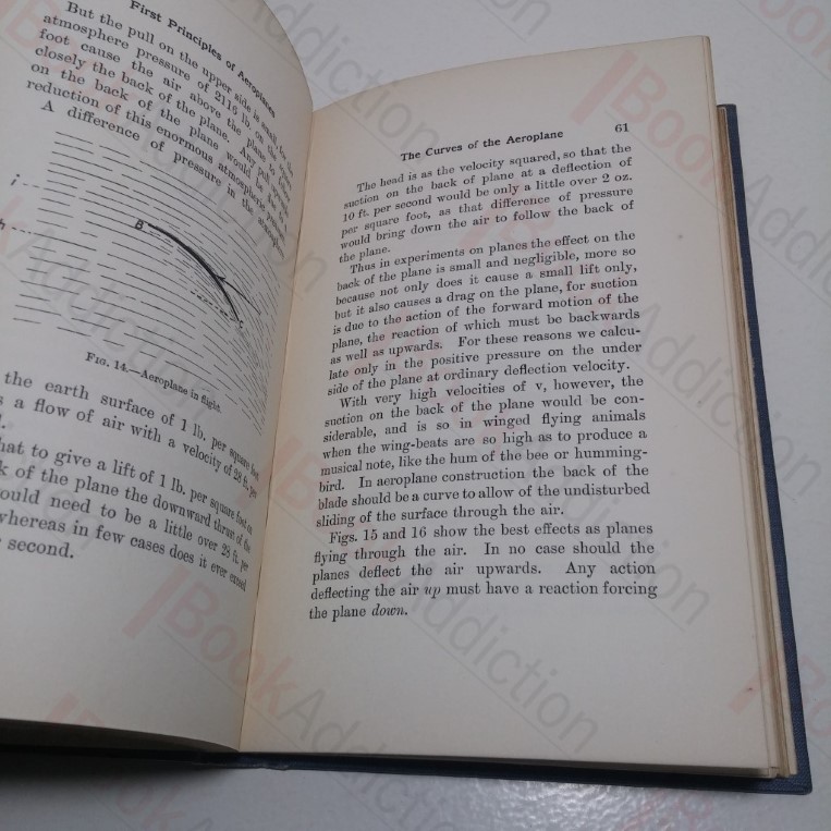 An early book on aeroplane construction – with chapters on Elementary Mechanics & Physics; Principles of Inclined Planes; Air & Its Properties; Principles of the Aeroplane; The Curves of the Aeroplane; Centres of Gravity, Balancing, Steering; The Propeller; The Helicopter; The Wing Propeller; The Engine; The Future of the Aeroplane. Illustrated with black and white diagrams.