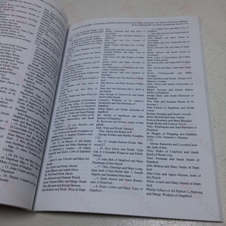 A reprint of the original records from St Mary’s Church in Lewisham, made using optical character recognition.