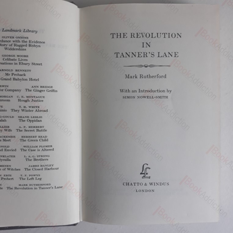 xiv, 388pp. First published in 1887, this is a re-issue of Rutherford’s classic historical novel which opens just before the Battle of Waterloo. With a new introduction by Simon Nowell-Smith. Brown cloth-covered boards with gilt lettering (boards square, sharp and clean). Internally clean, bright and tight (small scuff on front endpaper). In its original dust jacket (a little rubbed at extremities and now protected in a mylar wrapper). Although not a regional novel, at least half the action takes place in a market town identifiable as Bedford; the settings of Rutherford’s books – provincial, middle-class, dissenting in an age of religious questioning – have close parallels with George Eliot and he has often been couple with George Gissing, but the associations are superficial. His books were widely read, influential even – Matthew Arnold was an avid reader. But Rutherford is largely, and unfortunately, overlooked now, for he was a superb writer. His works are now a little tricky to find, especially pleasing hardback volumes such as this.