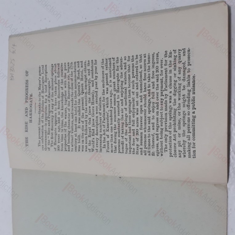 8pp, stapled booklet with printed card covers (a little worn and faded at edges). Internally neat and clean, with just a little discolouration at extreme page edges. A brief history of Harrogate and its development in the latter half of 19th Century, written by the then Town Clerk, with useful details of population, improvement Acts and governance.
