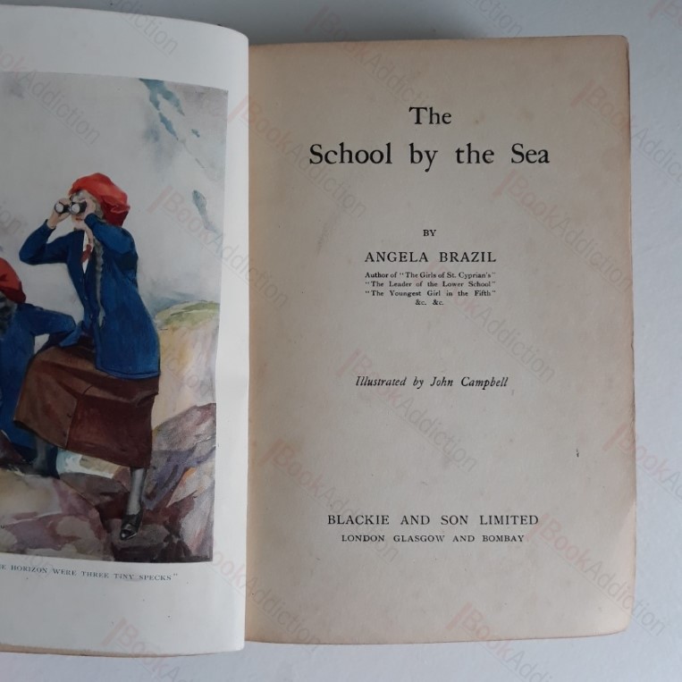 No dated but c 1920. Colour plate frontis and four further monochrome plate illustrations, all by John Campbell. Pictorial boards (showing girl looking out to sea on front and group of school girls on spine). Boards worn and strongly rounded at corners and joints, slightly frayed at spine tips and a bit faded. Internally occasional spotting, prize inscription on front free endpaper verso.
