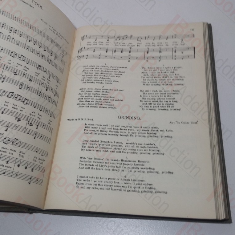 360pp, music scores throughout. Pictorial cloth-covered boards; gilt titles on front and spine; text block edges sprayed green. 4to. Sun-faded spine, rubbed corners and spine ends. Free endpapers tanning, pages ageing, volume shaken. Otherwise internally neat and clean.