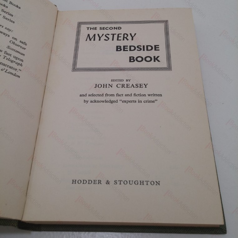 First thus. 222pp, some black and white in-text illustrations. Green cloth-covered boards, gilt titles on black spine label. Light foxing to text block edges. Internally neat, clean, bright and tight. Dust jacket has some shelf wear, light chipping to edges, price unclipped. 12mo. A new selection from John Creasey’s Mystery Magazine of fact and fiction by some of the best of modern crime writers.
