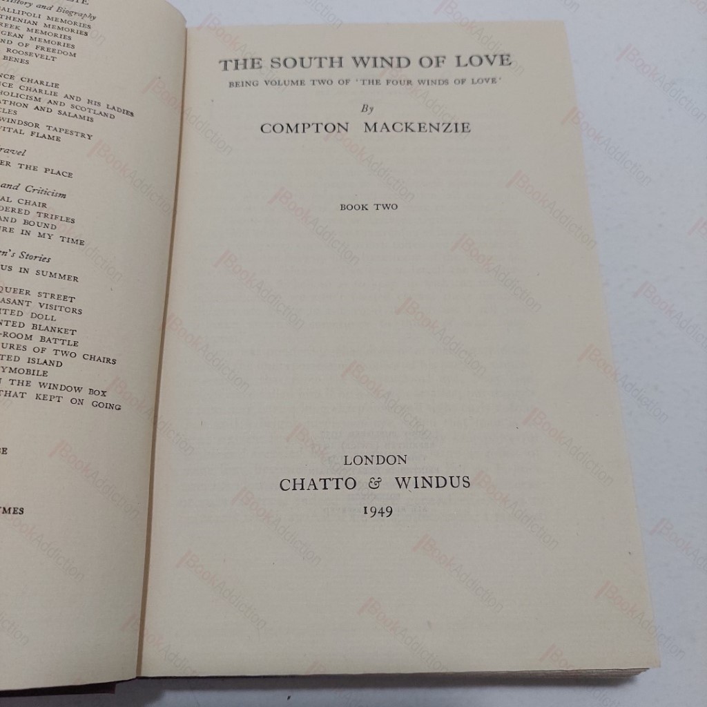 Complete in 2 volumes. 1st thus. Two matching volumes. viii, 420pp & iv, 416pp Red cloth-covered boards with gilt lettering on spine and publisher’s motif on front. Cloth a little rounded at spine tips, volume two has a short, mild warp on front. Both internally neat, clean, bright and tight, barring a previous owner’s stamp on the front free endpaper in each volume. Both volumes in their original worn and torn dust jackets, sunned on spines, volume one has a portion missing from spine and volume two is price clipped. Both jackets now protected in archival-quality mylar wrapper. The Four Winds of Love, published in six volumes between 1937 and 1945 and containing almost 1 million words, is one of the most ambitious Scottish novels of the twentieth century, an enormous historical odyssey which anatomizes the politics of peripheral nationalism both throughout Europe and in Britain, again through semi-autobiographical character development.” (Gavin Wallace). The South Wind of Love, first published in 1937, is the second in the series. .