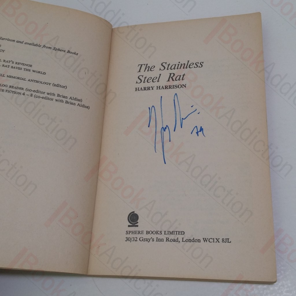 Mass market paperback. Reprint. 158pp. Signed on the title page by Harry Harrison. In stiff card, illustrated covers. 12mo. Covers rubbed at edges with some corner creasing and light scuffing at spine ends. Indentation on rear cover affecting last few pages. Some mild page toning. The first volume in Harrison’s Stainless Steel Rat series to be published, the fourth in the series chronology. Large parts of the story first appeared in two novellas originally published in the August 1957 issue of Astounding magazine, which were reworked by Harrison into this novel.