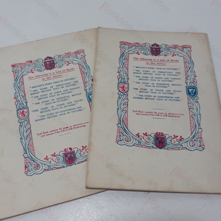 Circa 1950. The Story of Tudor & Stuart Britain: 64pp, boasts having over 500 illustrations. One illustration cut out page 43/44 and page 45/46. The Story of Saxon & Normal Britain: 64pp, boasts having over 460 illustrations. 8vo.