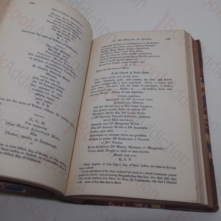 Volume II only. 594pp [2, blank]. Half bound in tan leather over marbled boards, gilt titles on red leather spine label. Coloured endpapers. 8vo. Boards are worn, rubbed at edges, leather worn and chipped at corners and over spine and joints. Front hinge cracked. Minor discolouration at edges of endpapers. Faint and occasional spotting on first and last few pages. Armorial bookplate of Edward Lowry Barnwell on front paste down. Barnwell (1813-1887) was an antiquarian and schoolmaster, and founding member of the Cambrian Archaeological Association. Armorial bookplate of Herbert Hanbury Smith-Carrington on the front free endpaper. Carrington-Smith (died 1917) was a one time mayor of Worcester who purchased the Ashby Folville estate in Leicestershire in 1890. A comprehensive guide to genealogy and topography covering topics such as heraldry and historical records.