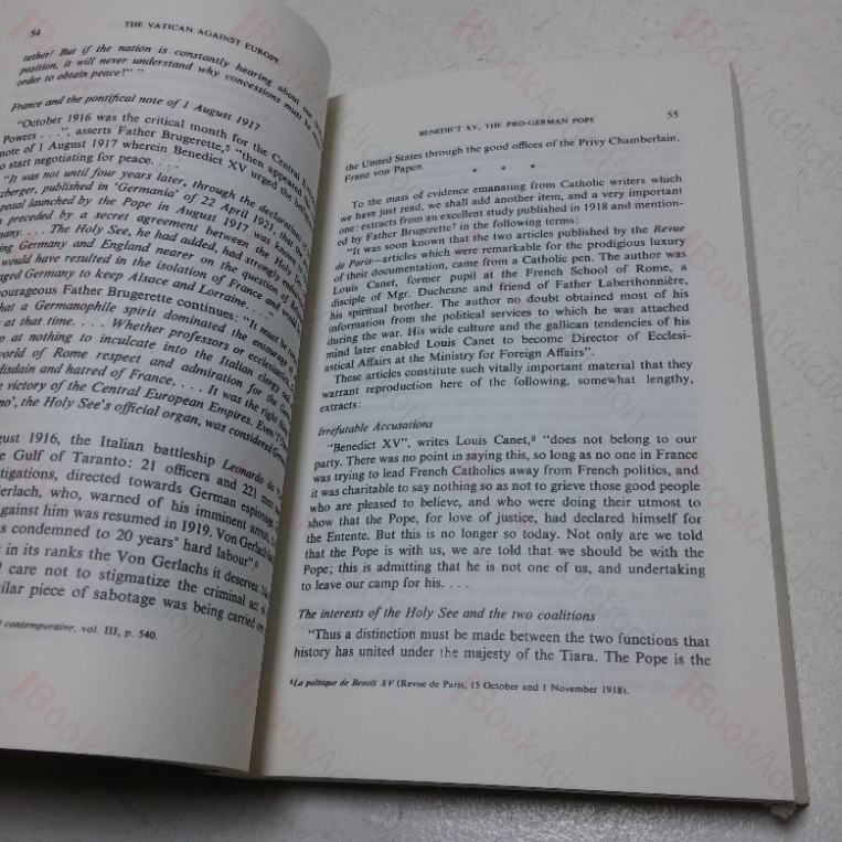 A controversial book first published in French In 1959 which argues that the Vatican’s political actions, particularly in the first half of the 20th century, were detrimental to European stability and democracy, suggesting that the Vatican influently sought to reshape Europe along its preferred lines. Paris posits that the Vatican had a ‘primordial role’ in events leading to the first and second world wars and aligned with Central powers and the Germanic world to counter liberalism, socialism and communism; some interpretations of Paris’s theories allege that the Catholic Church aided Mussolini and Hitler to take power, thus facilitating the rise of facism and nazisim, and assisted war criminals in evading the allied forces after the war.