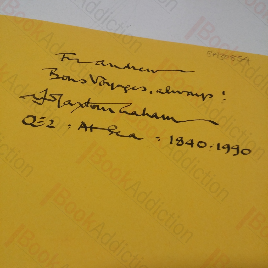 Third edition. viii, 184pp, with black and white illustrations throughout and seven large, fold out technical drawings showing the specification and design of the Olympic and Titanic and interior fittings. Signed and inscribed by John Maxtone-Graham on the front free endpaper, ‘For Andrew, Bons Voyages, always!, John Maxtone-Graham, QE2, at sea: 1840-1990’. Loosely laid in two bookplates stating the book was bought at the Ocean Bookshop, Queen Elizabeth 2; A Cunard reciept from the Ocean Bookshop (for two books), dated 19/7/90, and a postcard-sized reproduction of a 1929 Cunard poster, with printed notes on the back indicating that the poster is from the Cunard Collection and the postcard produced as part of Cunard’s 150th anniversary celebrations. Dark brown cloth-covered boards with gilt titles on the spine. Bright yellow endpapers. 8vo. Volume is neat, clean, bright and tight throughout. In its original dust wrapper, very slightly bumped at edges.