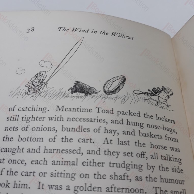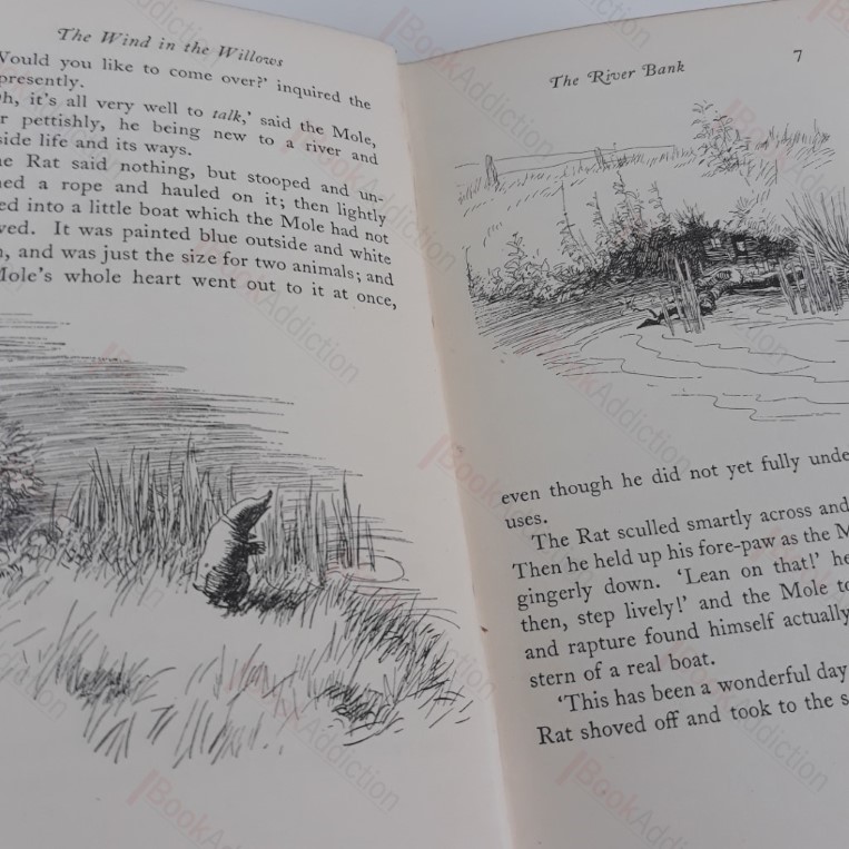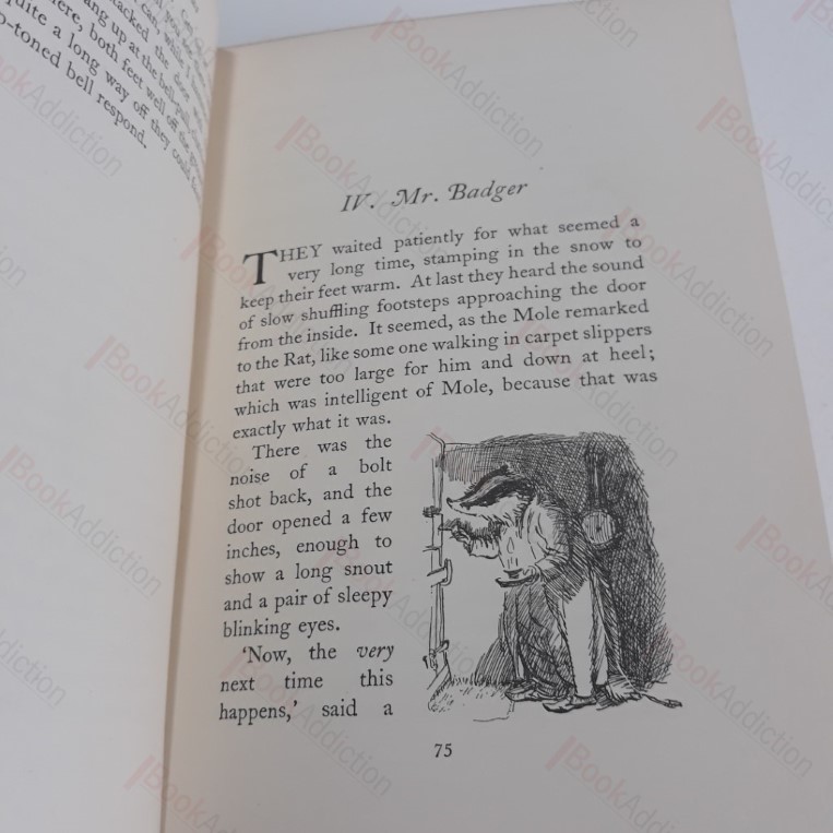 320pp, 8pp publisher’s catalogue bound in at rear; beautifully illustrated with numerous engraved vignettes. First published in 1908, this 1931 edition was the first to be issued with E H Shepard’s illustrations, which are now eternally associated with the tales of Mole, Ratty and Mr Toad. Green cloth-covered boards with gilt lettering on spine and gilded motifs and illustrations on front. Gently rubbed spine ends, corners very gently rounded. Attractively illustrated endpapers. Presentation bookplate on verso of free end paper. Very minor spotting on prelim pages. Otherwise internally neat, clean, bright and tight. 12mo.