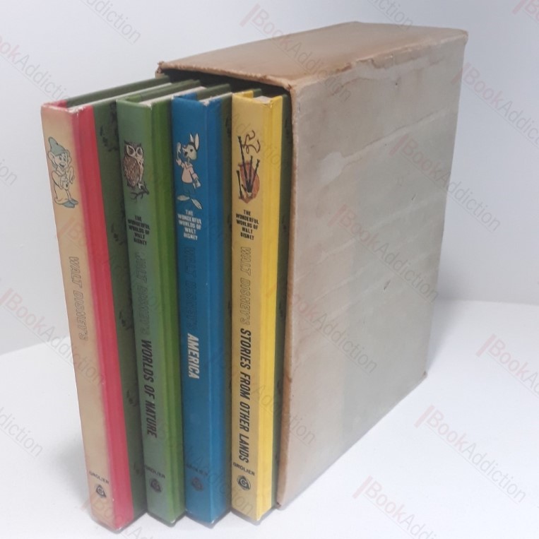 4 hardcover volumes in cardboard slipcase. Fantasyland: 256pp with full colour illustrations throughout. Printed cloth-covered boards. Illustrated end papers. Spine sun faded. Small piece of both front free end paper and last page missing. Worlds of Nature: 256pp with full colour photographs throughout. Printed cloth-covered boards. Illustrated end papers. America: 256pp with full colour illustrations throughout. Printed cloth-covered boards. Lightly rubbed at spine ends. Stories from Other Lands: 256pp with full colour photographs throughout. Printed cloth-covered boards. Cardboard slipcase has signs of water damage and sun bleaching; generally worn and rubbed. 4to.