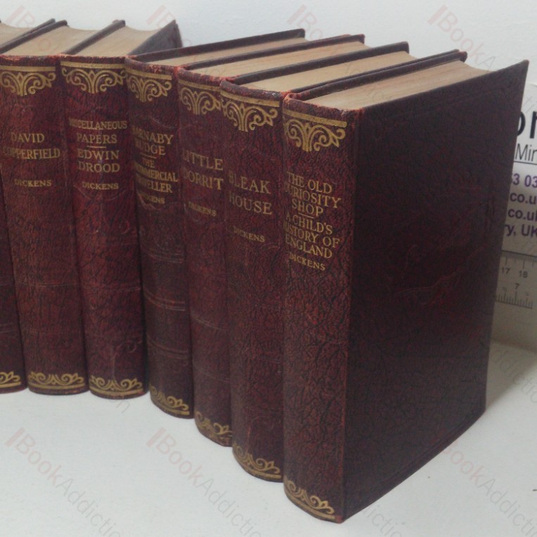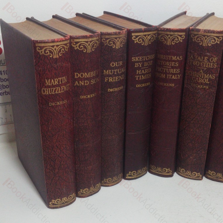The works in this set are: Nicholas Nickleby, Our Mutual Friend, David Copperfield, A Tale of Two Cities, A Christmas Carol, Bleak House, Christmas Stories, Pictures From Italy, Oliver Twist, Great Expectations, Dombey and Son, Little Dorrit, The Pickwick Papers, Martin Chuzzlewit, The Old Curiosity Shop, A Child’s History of England, Barnaby Rudge, The Uncommercial Traveller, Edwin Drood, Miscellaneous Papers, American Notes, Master Humphrey’s Clock, Sketches by Boz and Hard Times. There is also a Life of Dickens included.