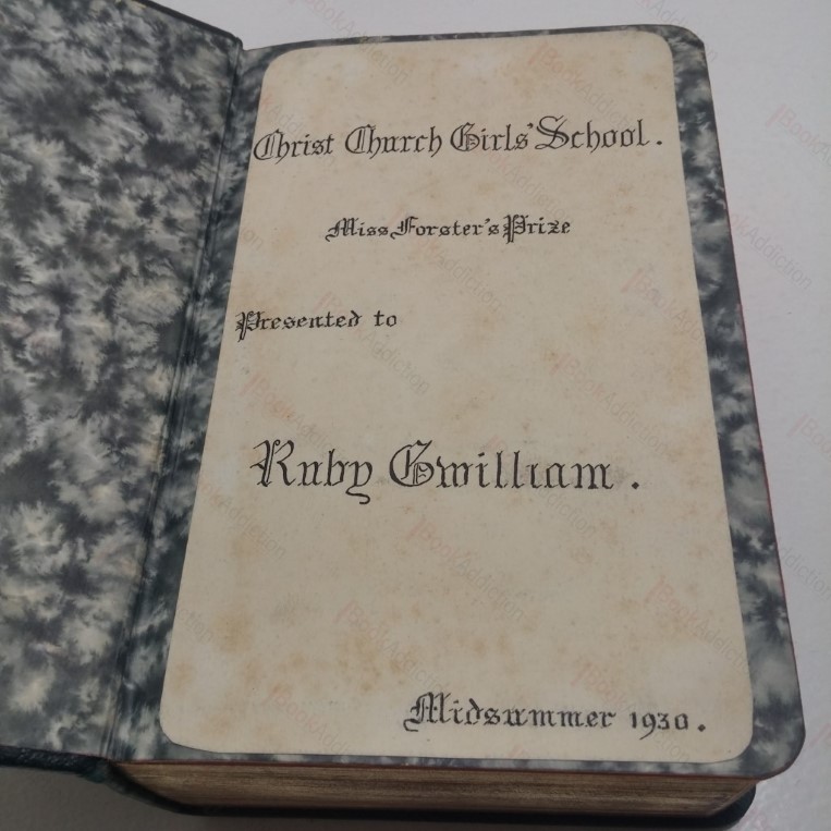 Undated but circa 1930. xvi, 1600pp; black and white frontispiece. Black leather-covered boards, gilt titles on spine, gilt design on front. 8vo. Wear to covers, spine and corners. All edges gilt. Marbled endpapers. Presentation plate on front free end paper (dated 1930).