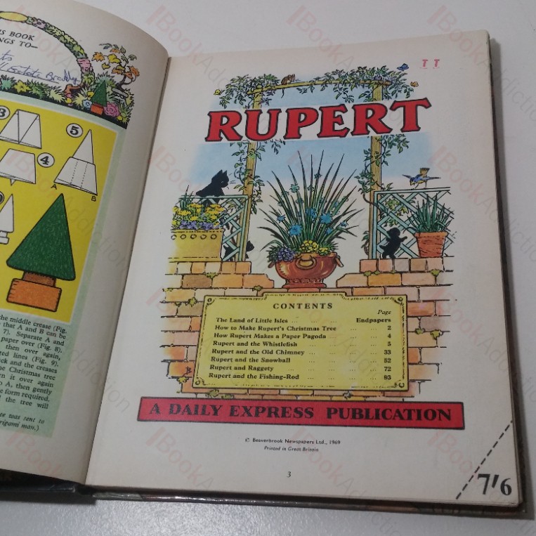Three Rupert the Bear annuals from 1969, 1972 and 1978.  Colour illustrations throughout.  In glazed pictorial, strong card covers.  8vos.  Boards are a little pushed at spine ends and some corners, slightly shelf worn.  Text block edges a little rubbed and toned.  The 1969 annual has some pencil annotations and a previous owner’s name on the front free endpaper; the 1972 annual is price clipped on the title page and the ‘belongs to’ box has been filled in; otherwise all fresh, neat and bright internally.