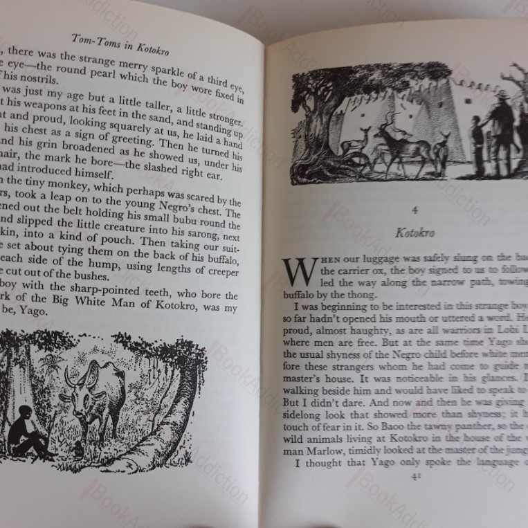 Translated from the original French by Brian Rhys, this is the first English language edition. 192pp, with attractive illustrations by A Douthwaite in text. Cream cloth-covered boards (just a hint of fading on edges). Internally neat, clean, bright and tight. Publisher’s shelf copy, as indicated by elegant bookplate on front free endpaper. In its original dust jacket (slightly bumped and rubbed at edges). Jacket fitted with archival-quality mylar wrapper to protect & prolong its life. It is not adhered to the book or to the jacket. Gift and collectible quality item with additional association with the publisher. An adventure novel set in the Ivory Coast, where the son of a former Polish atomic scientist finds more than refuge from his father’s Nazi enemies.