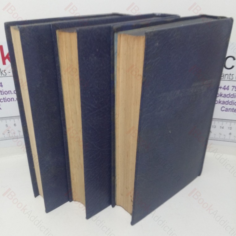 Six novels in three volumes. Publication date not stated but circa 1930. All three volumes in matching bindings of deep blue cloth with blind embossed decorations and gilt lettering on the spine. Marbled blue endpapers. Top edges sprayed blue. 8vos. Covers are a little shelf worn, gently pushed at corners and spine ends. Text block edges a little toned and spotted. Two of the volumes have a previous owner’s name neatly inked on flyleaf, else internally neat, clean and bright. All square and firmly bound.